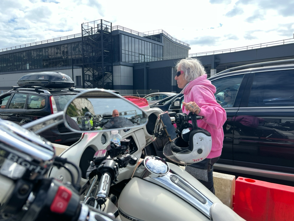 Heute Morgen, ein gutes Frühstück mit Hashbrowns genossen… dann los Richtung Dover… bis kurz vor Dover lief es richtig gut, dann der Mega Stau…wir mussten zwischen den Trucks und den Autos durch. Bis